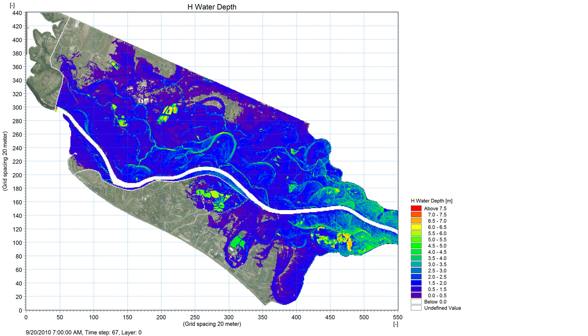 Due to the abovementioned reasons, the decision was made to establish a hybrid 1D-2D simulation flow model, which shone new light on the issue of reducing the peak water wave. For that purpose, a LiDAR surveying of the area was obtained. The model was performed in the MIKE Flood application, combining a 1D numerical approach to tributaries and channels and a 2D approach to flooded areas. The simulation model showed that the actual reduction of maximum flow was less than expected (10-15%) and amounted to 3-10%, depending on the water wave shape and maximum.